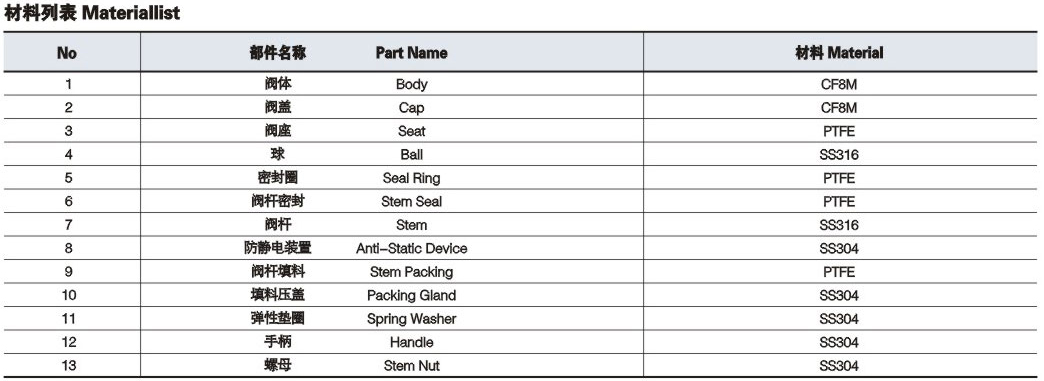 Q14W/Q15W丝扣三通球阀主要零件材料: