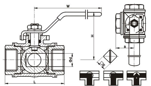 Q14W/Q15W丝扣三通球阀外形尺寸: